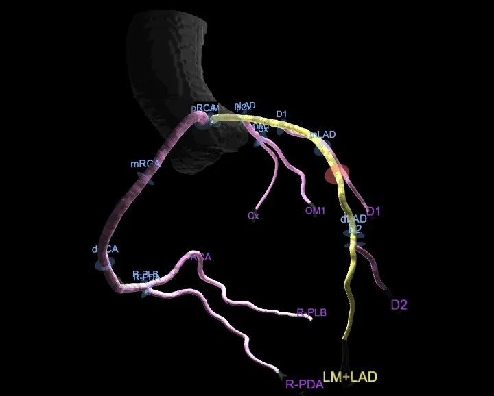 Coronary Computed Tomography Angiography (CCTA) is a noninvasive imaging study that, through the injection of contrast dye via an IV in your arm vein, identifies plaque, narrowing, or blockages in the coronary arteries. This advanced procedure employs a series of X-rays to produce detailed 3D images of your heart and coronary arteries, generating images previously only attainable through invasive heart catheterization.